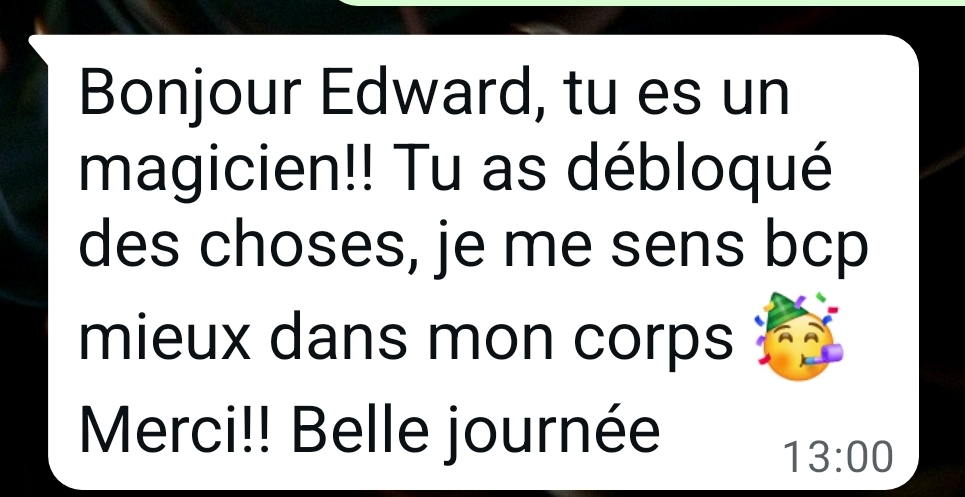 tu es un magicien !! Tu as débloqué des choses, je me sens beaucoup mieux dans mon corps 🥳